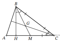 Пусть G — точка пересечения медиан треугольника ABC, совпадающая с точкой пересечения биссектрис (центром вписанной окружности) треугольника BCH. B треугольнике ABC эта точка лежит как на биссектрисе угла C, так и на медиане из вершины C. Значит, треугольник ABC — равнобедренный, AC = BC.